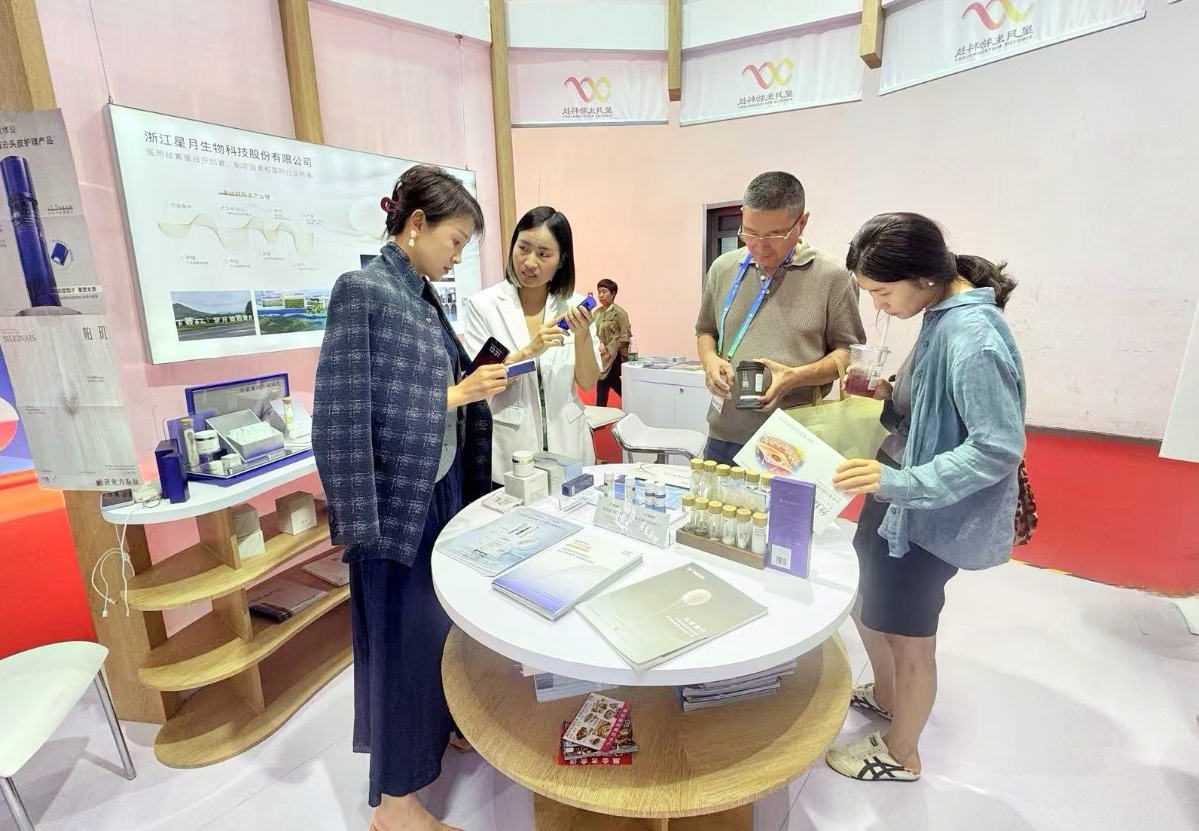 浙江星月生物科技股份有限公司展示了其全球领先的丝素蛋白医疗产品线。作为全球首家实现医用丝素蛋白原料规模化生产的企业,此次展出的丝素蛋白膜状敷料、疝修补补片等创新产品备受关注。展会首日,其口腔喷雾产品即获得2万支的订单。