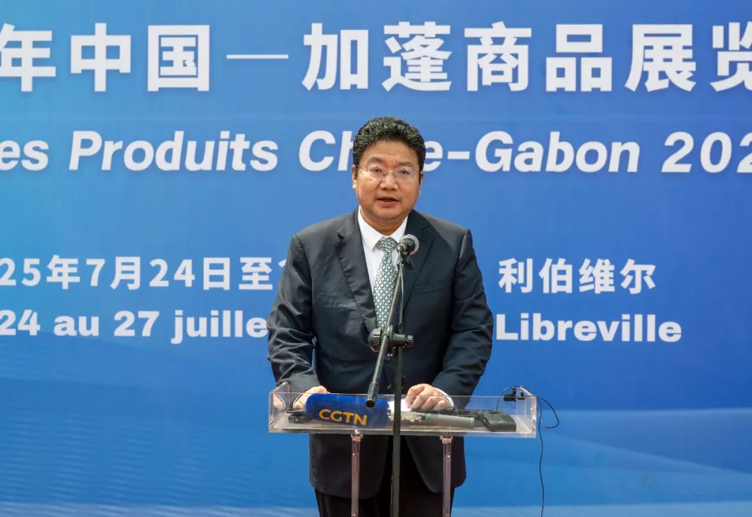 7月24日,由中国驻加蓬使馆、浙江省金华市婺城区人民政府、加蓬贸易部共同举办的2025中国—加蓬商品展览会在利伯维尔市开幕。周平大使、加贸易部长查宁、婺城区长胡余仙致辞。加外交、公共工程、数字经济、高教、渔业等部长及利伯维尔市长等出席开幕式并巡展。
