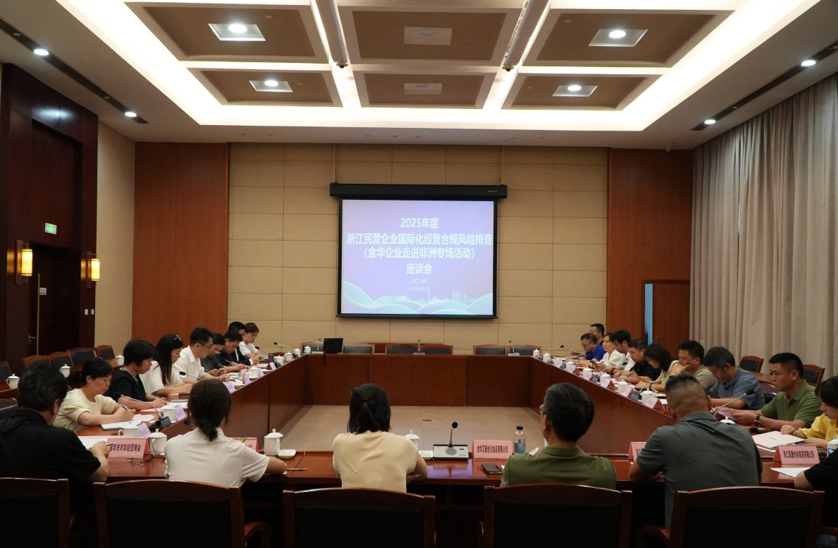 6月26日下午,由浙江省贸促会主办、金华市贸促会承办的浙江民营企业国际化经营合规风险排查座谈会(金华企业走进非洲专场)在金华召开,本次座谈会旨在搭建政企沟通桥梁,聚焦合规痛点难点,助力我市民企在国际化征程中行稳致远。全市20余家农业机械、新能源、纺织等重点行业企业代表参会。