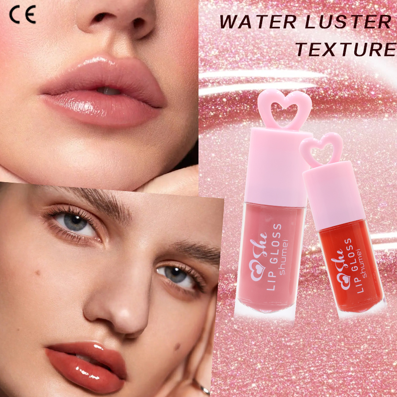 Custom Logo Cute Heart-Shaped Lip Oil Balm Nature Clear Lip Gloss with Fruit Flavor Private Label Makeup Set