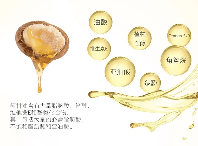 科学研究表明,阿甘油富含多种对皮肤和身体极为有益的营养成分: