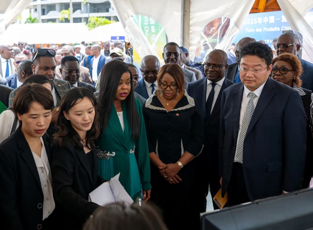 7月24日,由中国驻加蓬使馆、浙江省金华市婺城区人民政府、加蓬贸易部共同举办的2025中国—加蓬商品展览会在利伯维尔市开幕。周平大使、加贸易部长查宁、婺城区长胡余仙致辞。加外交、公共工程、数字经济、高教、渔业等部长及利伯维尔市长等出席开幕式并巡展。
