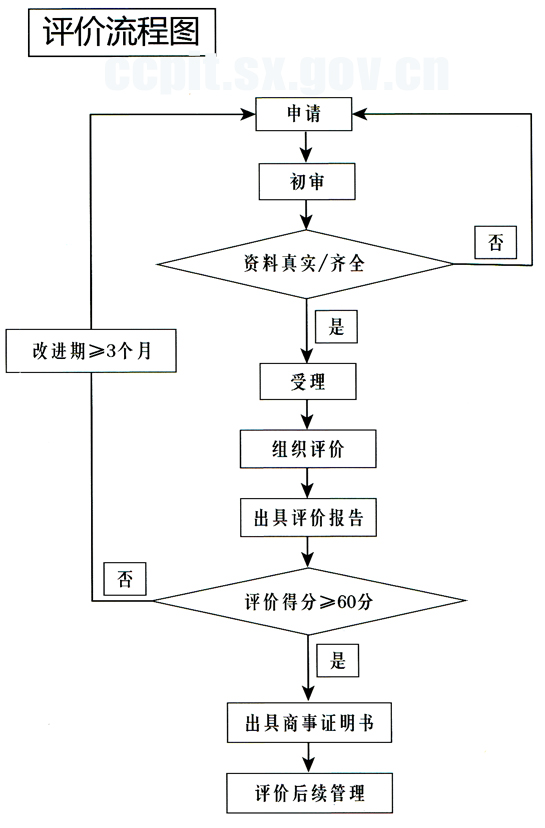 (6)出具商事证明书 : 收到评价报告后3个工作日内,依据评价报告,向通过评价(评价得分在60分以上)的企业出具证明书。