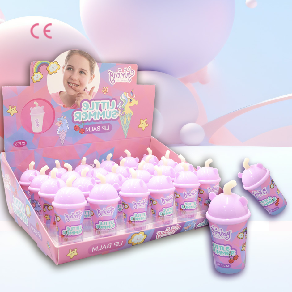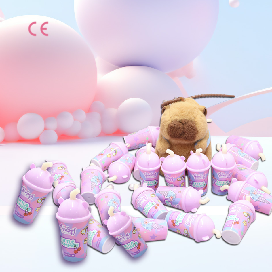 Factory Creative Eco-Friendly Straw Cup Hazard-Free Vegetarian Makeup Set for Kids with Multiple Flavors Lip Balm