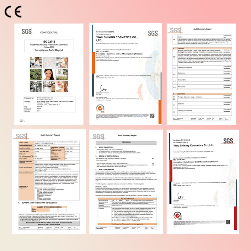 义乌市闪亮化妆品有限公司成立于 2012 年,座落于义乌市上溪镇高速公路入口附近,交通便利。公司占地面积 10000 平方米,目前拥有 300 多名技术人才和员工,具备强大的生产能力。公司拥有十万级空气净化车间,已通过 ISO9001、ISO22716、GMPC 认证体系、BSCI、SEDEX 等认证。公司主要生产彩妆及洗护产品,彩妆拥有全品类的生产线,包含但不仅限于眼影、腮红、粉饼、唇彩、口红、指甲油、睫毛膏、眼线笔、化妆品套装和身体护理产品。产品销往美国、欧洲、俄罗斯、澳大利亚等国家。