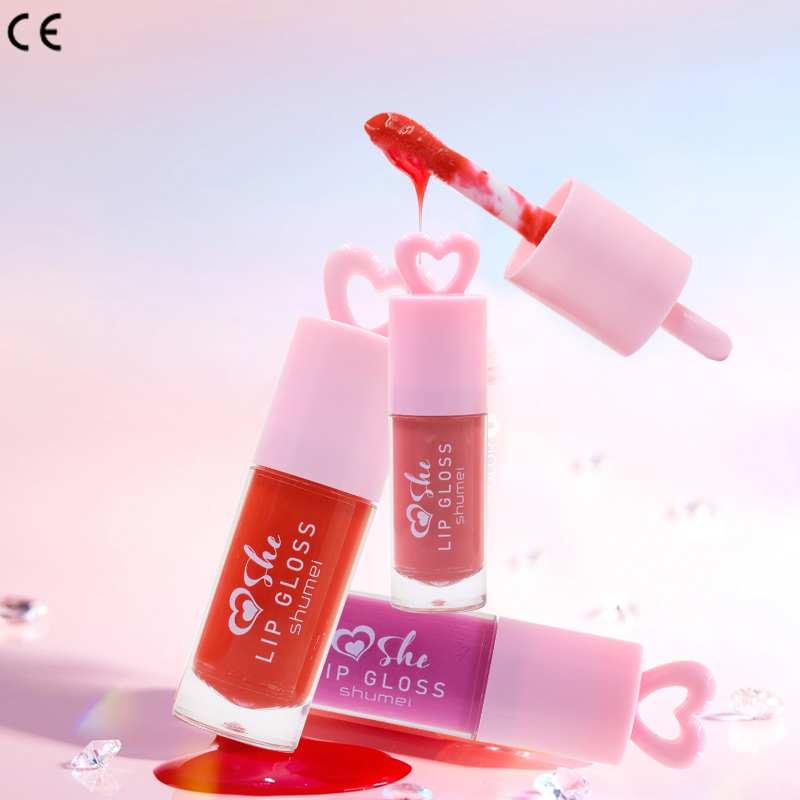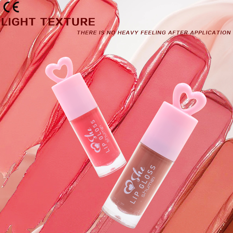 Custom Logo Cute Heart-Shaped Lip Oil Balm Nature Clear Lip Gloss with Fruit Flavor Private Label Makeup Set